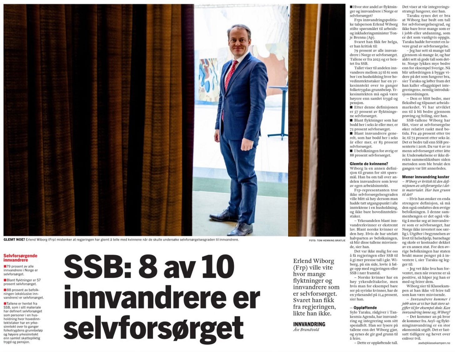 Dette og mer kunne journalist Åse Brandvold i Klassekampen ha påpekt, om hun var våken og kritisk. I stedet spurte hun Wiborg: